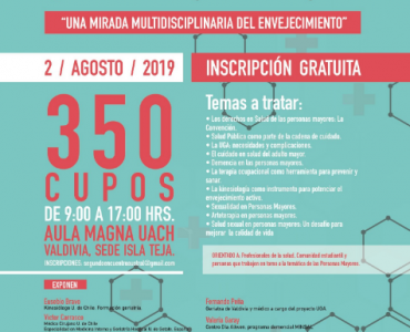 La actividad se realizará en la Universidad Austral de Chile El próximo viernes 2 de agosto de 2019 se realizará por Segunda vez el Encuentro Austral de Geriatría “Una mirada Interdisciplinaria del Envejecimiento”, organizado por el Hospital Base Valdivia, Universidad Austral de Chile y Fundación Oportunidad Mayor.    INSCRIPCIONES HASTA EL PRÓXIMO VIERNES 26.07.19   MÁS […]